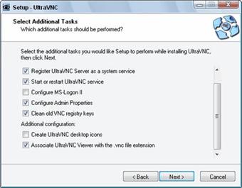 A próxima configura a criação dos menus de acesso do UltraVNC no