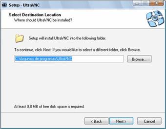 A próxima tela indica a pasta onde o UltraVNC será instalado. Clique em